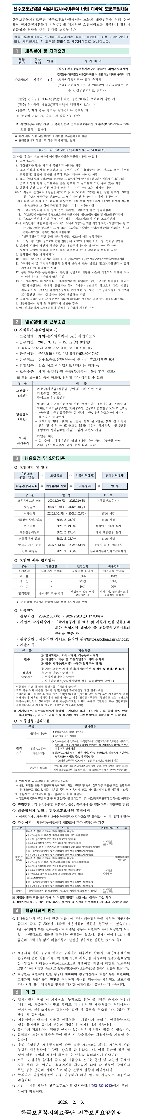 [전주보훈요양원] 작업치료사(육아휴직 대체 계약직) 보훈특별고용 공고