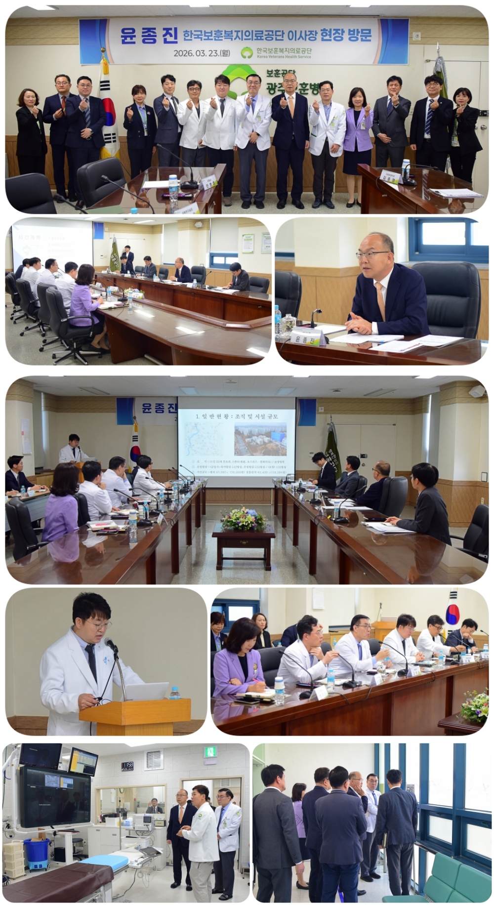 한국보훈복지의료공단 윤종진 이사장이 3월 23일 광주보훈병원(병원장 김형준)을 방문해 병원 운영 현황을 점검하고 현장 의견을 청취했다.