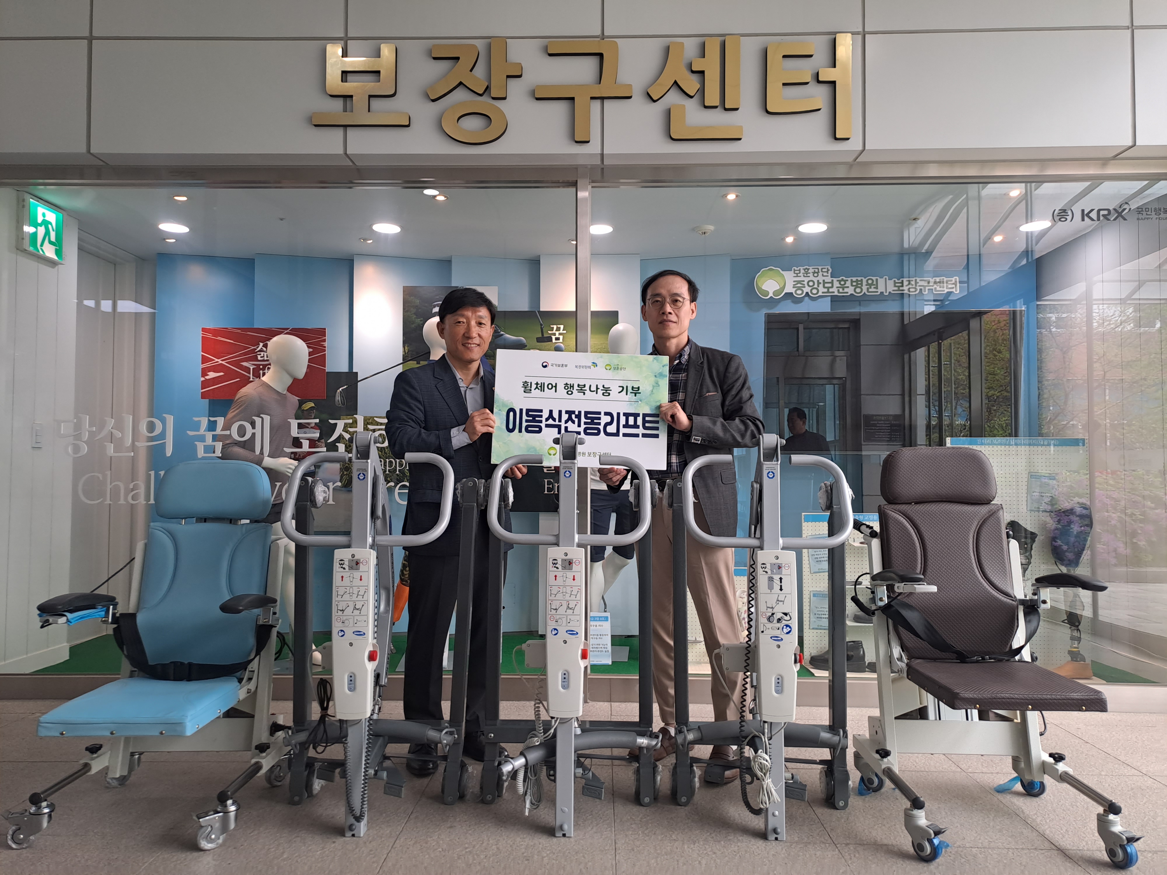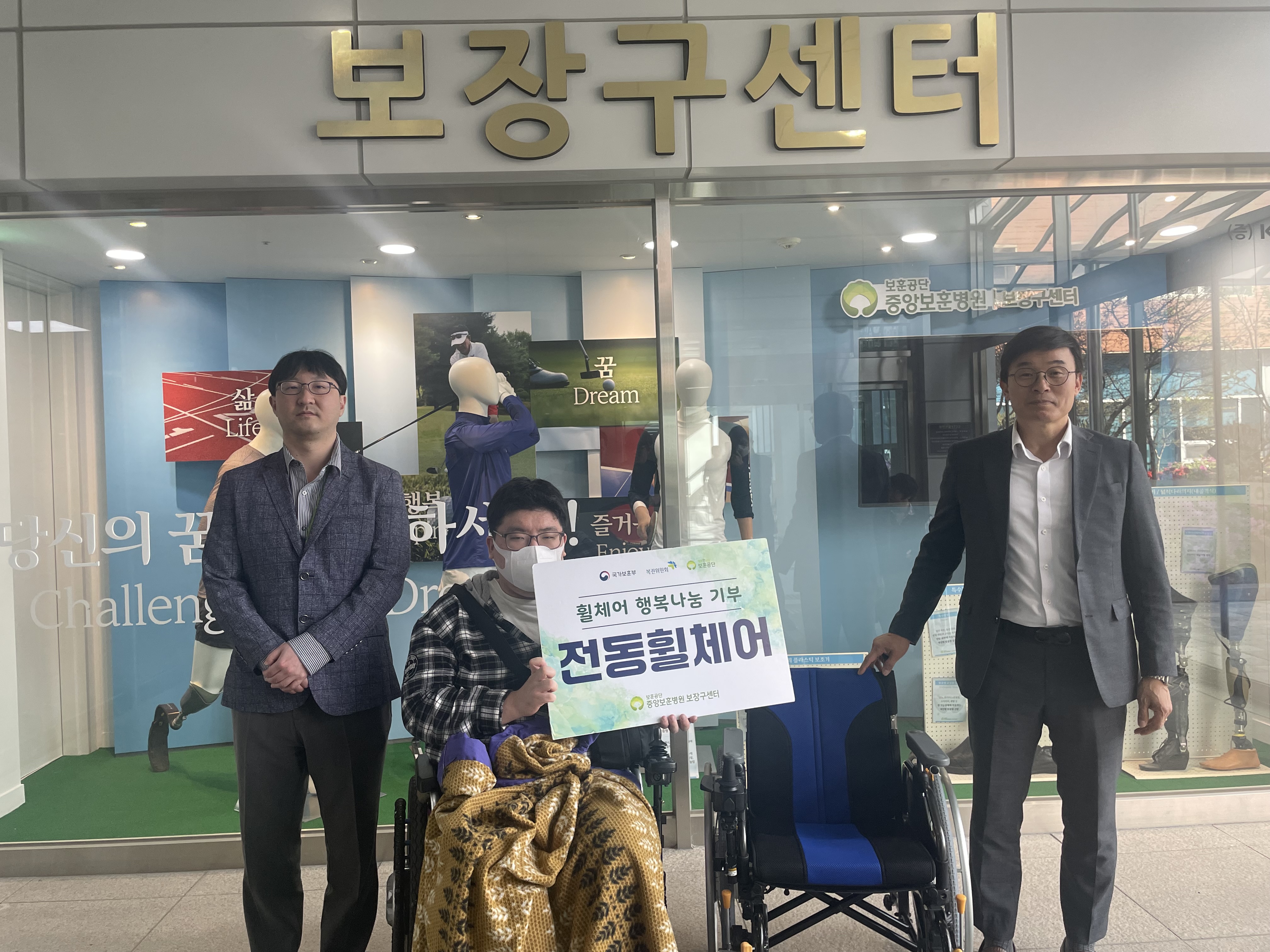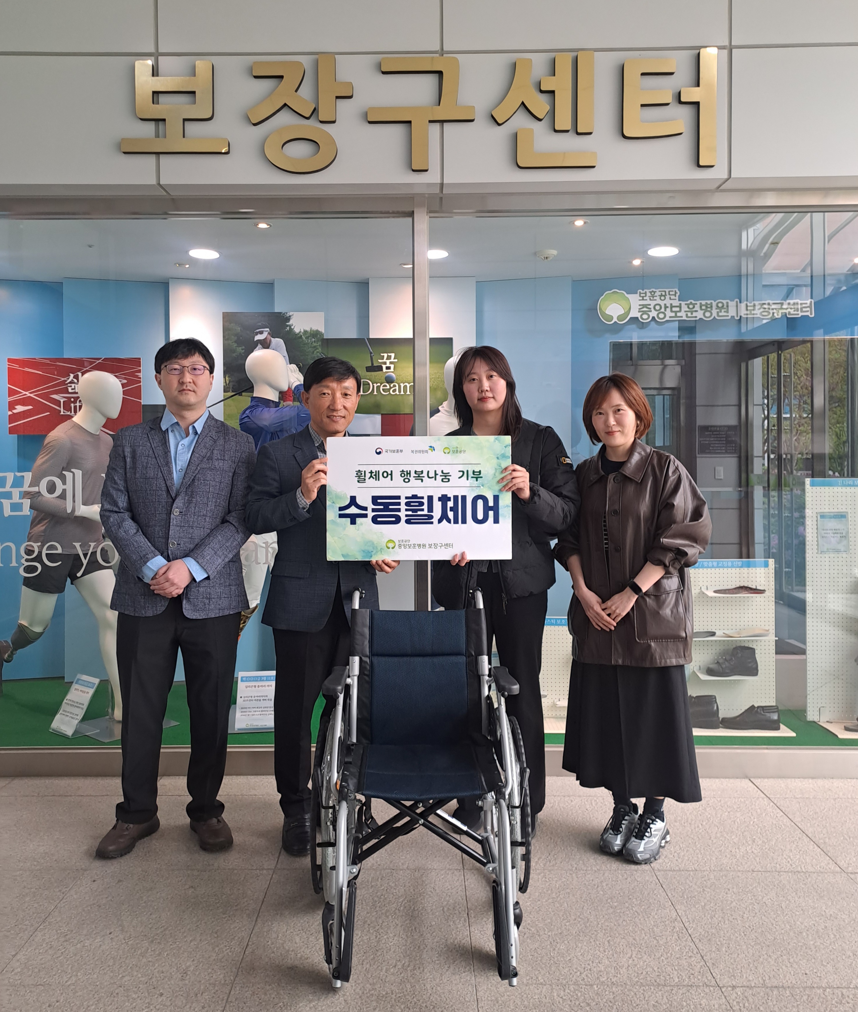 중앙보훈병원 보장구센터(센터장 채수정)는 2026년 4월 하지마비 장애인 ‘박유민’씨에게 전동휠체어 1대, ‘함께배움장애인야학’에 수동휠체어 1대, ‘서울정민학교’에 이동형 전동리프트 5대, ‘서울시립 창신동 쪽방상담소’에 수동휠체어 3대를 기부하는 휠체어 행복나눔 사업을 실시하였다.