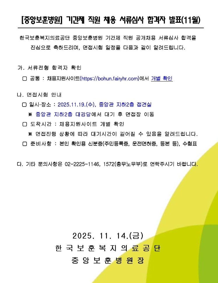 결과확인: 채용지원사이트(http://bohun.fairyhr.com)에서 개별 확인 (16시~, 크롬 또는 엣지 접속)