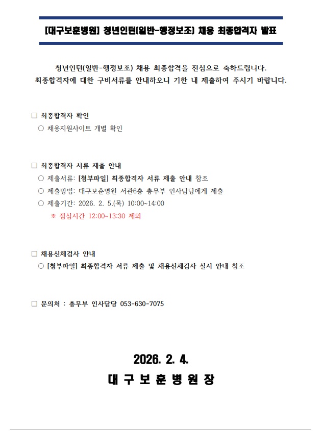*최종합격자 확인: 입사지원사이트 개별확인▶한국보훈복지의료공단 인재채용