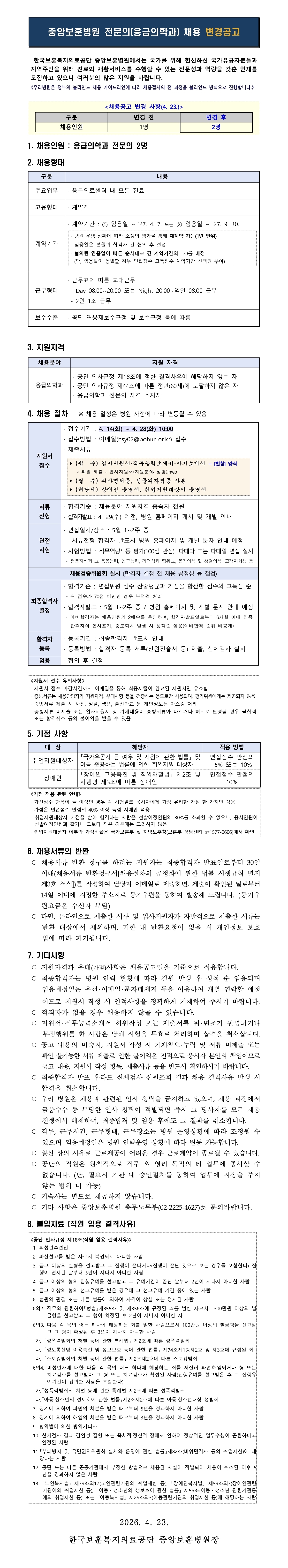 입사지원서(첨부 양식) 작성 이메일(hsy02@bohun.or.kr) 제출