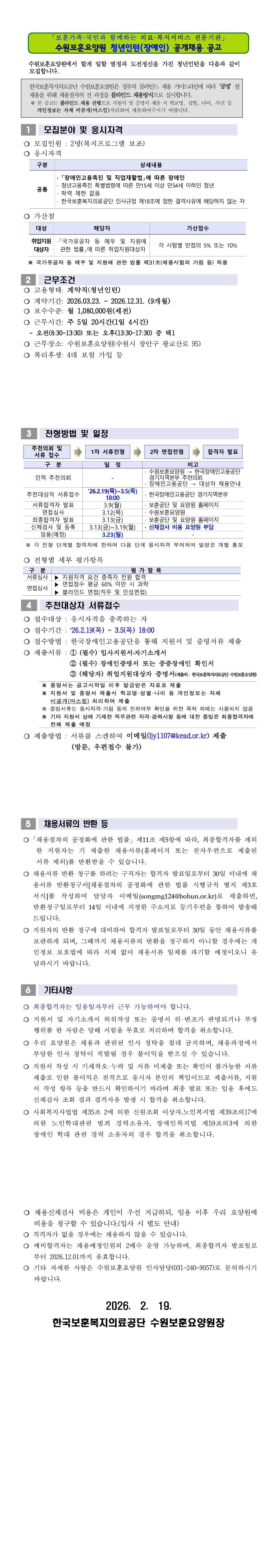 체험형 청년인턴(장애인) 채용 공고