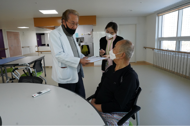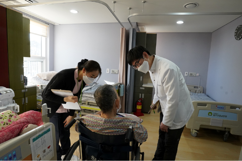 - 원주보훈요양원과 계약한 의사가 주기적으로(월 2회) 방문하여 어르신의 건강상태를 확인하고 성의있게 진료합니다.
