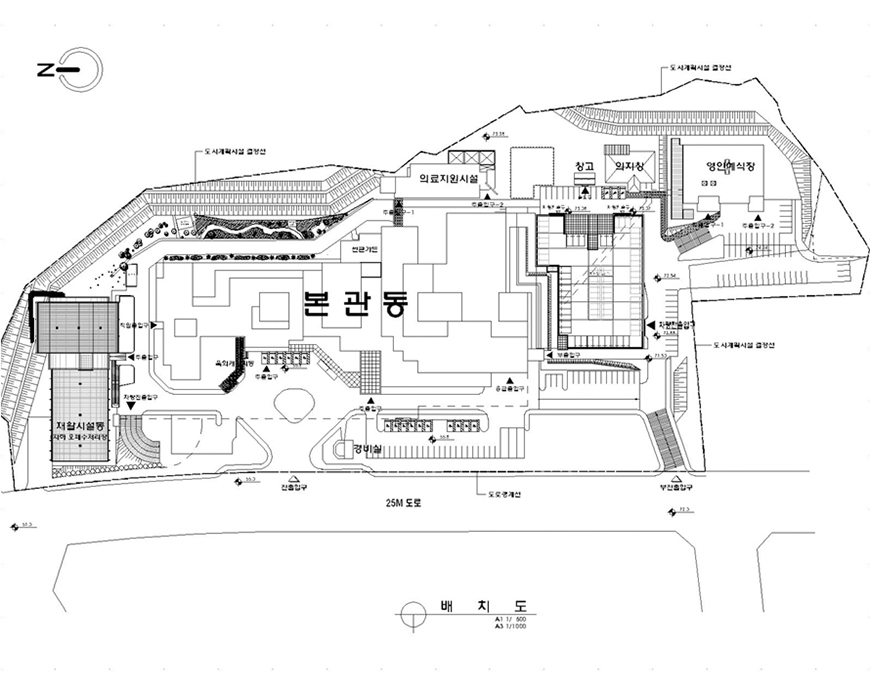 - 시설규모 : 본관(지하 1층, 지상 5층), 장례식장, 보장구센터, 의료지원시설, 창고, 재활체육센터,주차건물